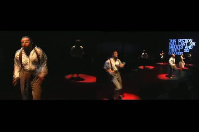 This intensely physical piece puts the performers through their paces – an extended sequence where the entire cast runs in place for the entire 6 minutes and 36 seconds of Metallica’s “Creeping Death” (inspired by the band’s viewing of The Ten Commandments and its representation of the plague “the slaying of the first born”) is inspiring and exhausting. Haggadah, with its wrestling matches (the word “israel”, etymologically, can be translated as “wrestling with G-d”), a fantastic duet between Moses and Nefertiti where he rejects her advances and several dynamic group numbers, is Safer’s most physically adventurous and athletic work since Dancing vs. The Rat Experiment and in this case the physicality drives the piece with a sense of urgency and fun…